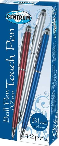 De Centrum “Touch pen” is een blauw schrijvende drukknop balpen, dat iets speciaals biedt behalve het prettig mee kunnen schrijven. De drukknop is van zacht rubber materiaal, waarmee u kan werken op een touchscreen. Geen lelijke vingerafdrukkingen meer op uw touchscreen! handig en voordelig.
