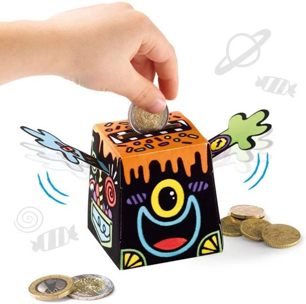 1.Kleur de voorgesneden fluwelen spaarpot met de viltstiften