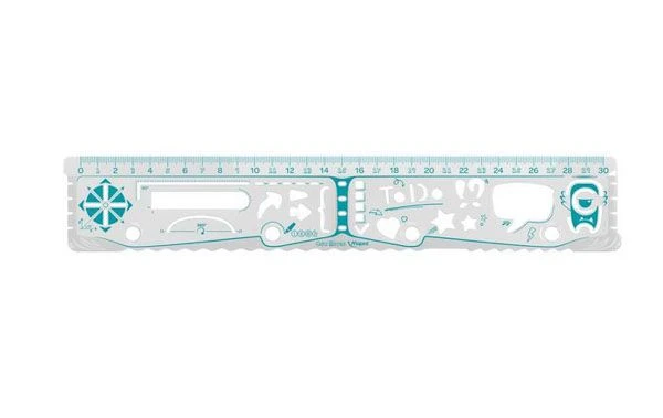 Een liniaal dat mogelijk gemaakt wordt voor dubbel gebruik. Verkrijgbaar in 2 verschillende kleuren.