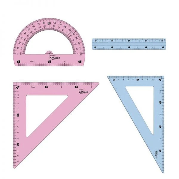 De Maxi twist’n flex set van Maped komt met een liniaal van 30cm, 2 tekendriehoeken en een gradenboog. Het is van hoge kwaliteit en onbreekbaar materiaal. Handig als je alles zo in een set bij elkaar hebt.