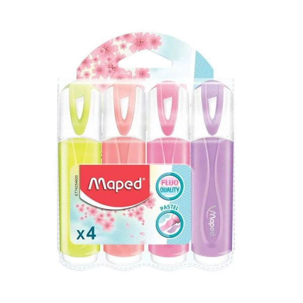 De Maped highlighters komen in een pak van 4 pastel kleuren zodat u ruim keuze heeft. De highlighters hebben een gebeitelde punt en zijn geschikt voor zowel school als kantoor gebruik. Het arceren van aantekeningen in schriften of documenten kan gedaan worden met opvallende kleuren. Passen makkelijk in een etui en hebben een dop die de kleur weergeeft van de highlighter.