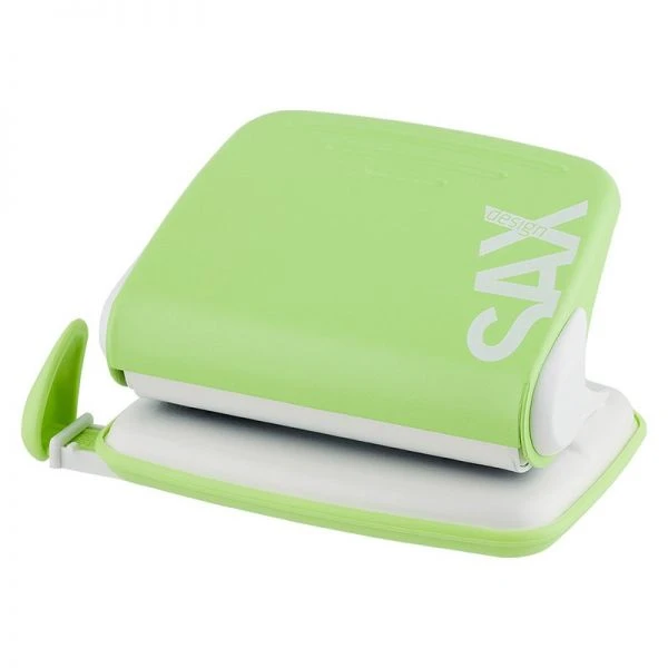 De groene Sax “Design” perforeermachine komt in fleurige kleuren voor uw kantoor. Met een perforeercapaciteit van 15 vellen per keer, een confettibak, een plastieken geleiderrail is het een stevige perforeermachine die u kunt aanschaffen. Schaf de Design perforeermachine aan voor uw kantoor en kies uit de fleurige kleuren van deze collectie. Verkrijgbaar per stuk.