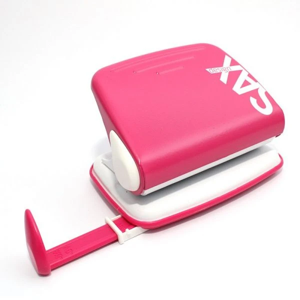 De rose Sax “Design” perforeermachine komt in fleurige kleuren voor uw kantoor. Met een perforeercapaciteit van 15 vellen per keer, een confettibak, een plastieken geleiderrail is het een stevige perforeermachine die u kunt aanschaffen. Schaf de Design perforeermachine aan voor uw kantoor en kies uit de fleurige kleuren van deze collectie. Verkrijgbaar per stuk.